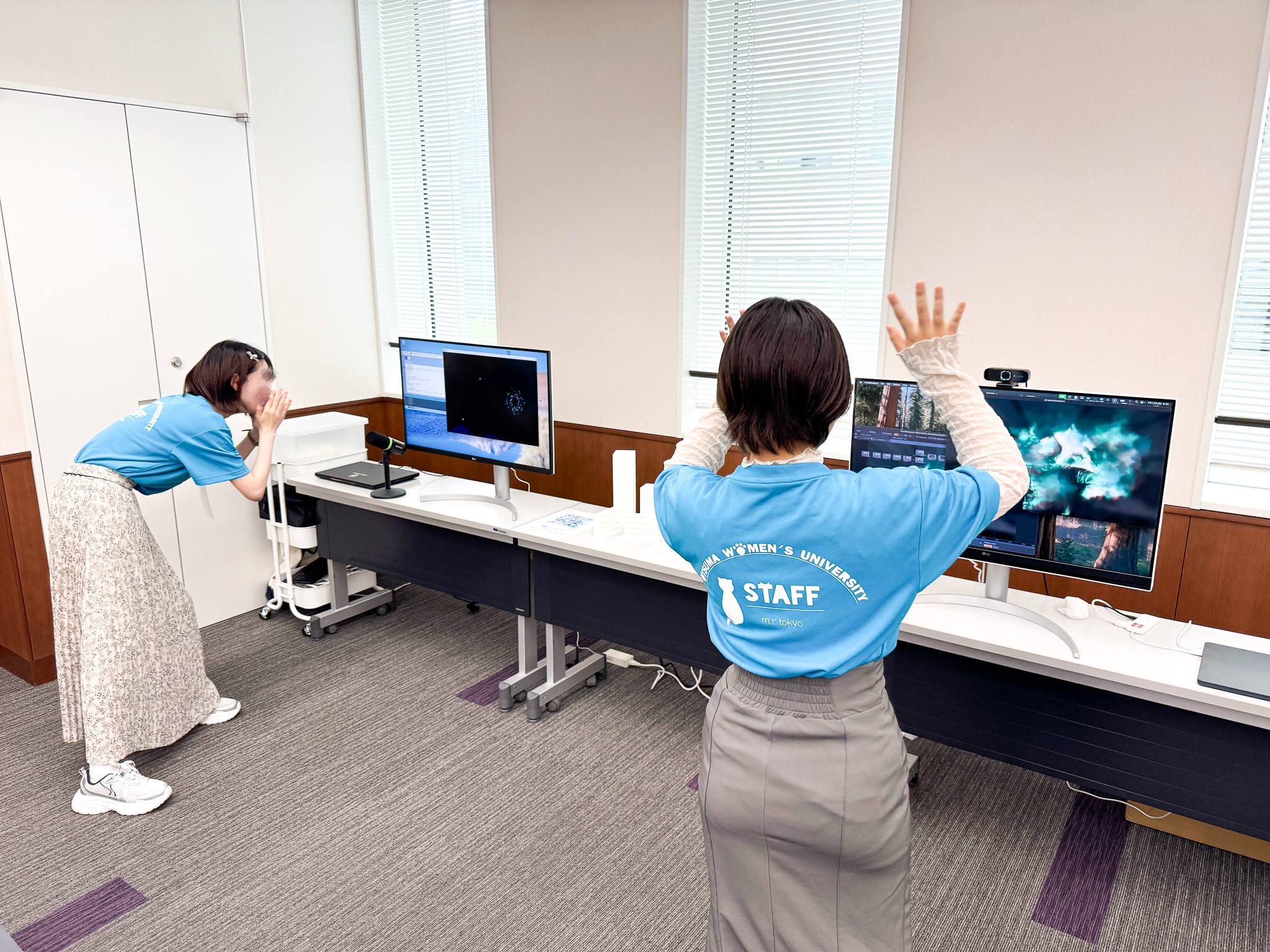 2024年と2025年の大妻女子大学の学園祭「大妻祭」で、学生たちが自分たちで作った体験型システムを展示しました。プログラミングや電子工作を使って工夫しながらシステムを作り上げ、多くの人に体験してもらいました。実際に遊んでもらったときの楽しそうな反応を見ることができ、とても嬉しかったです。