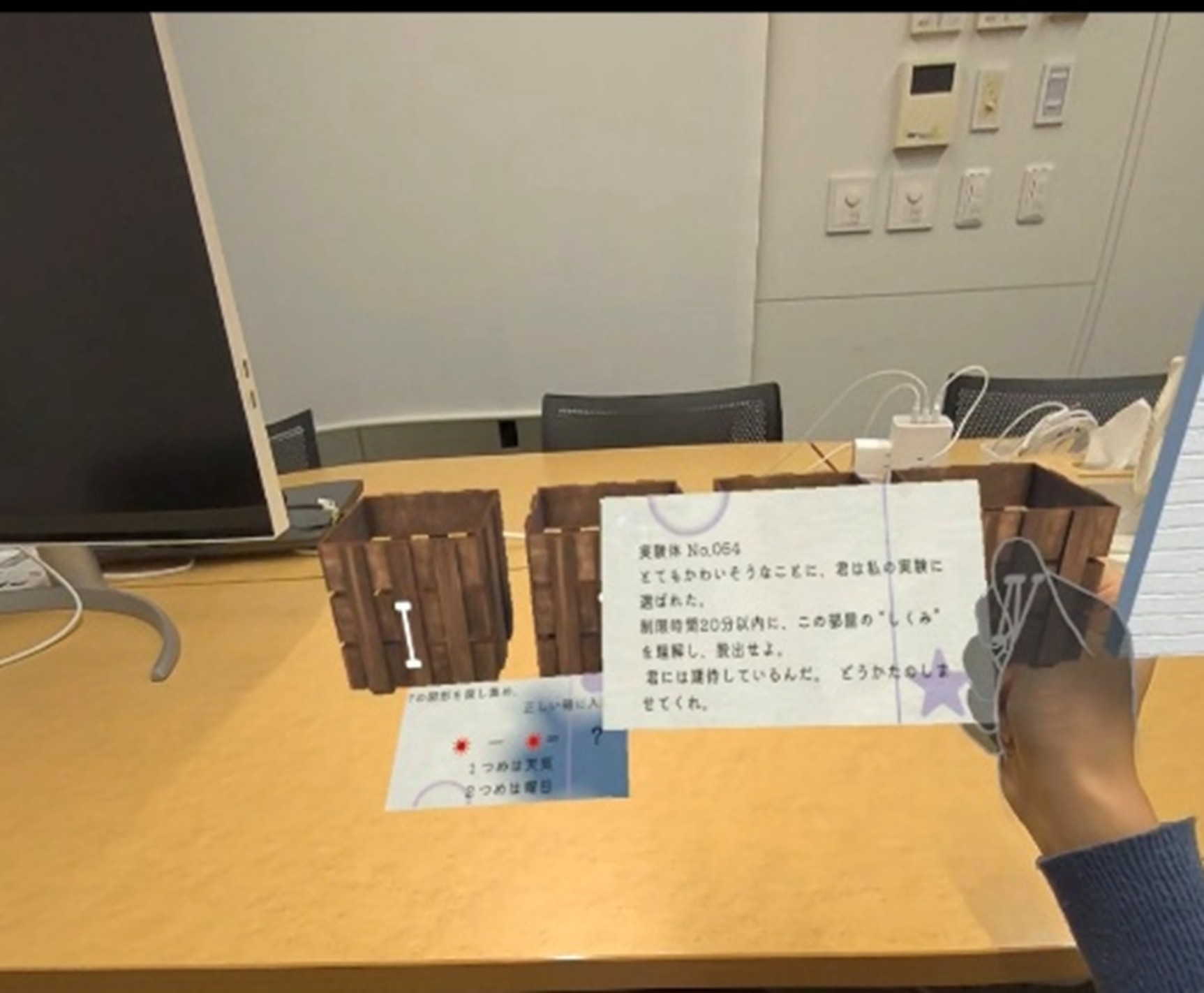 Reality)を用いた脱出ゲーム体験に着目した.実際に脱出ゲームを構築し,構築した脱出ゲームでは,リアル空間を基盤としてバーチャル演出・空間変化を重ねることで,ユーザの認知と没入感がどのように変化するかを明らかにすることを目的とした.